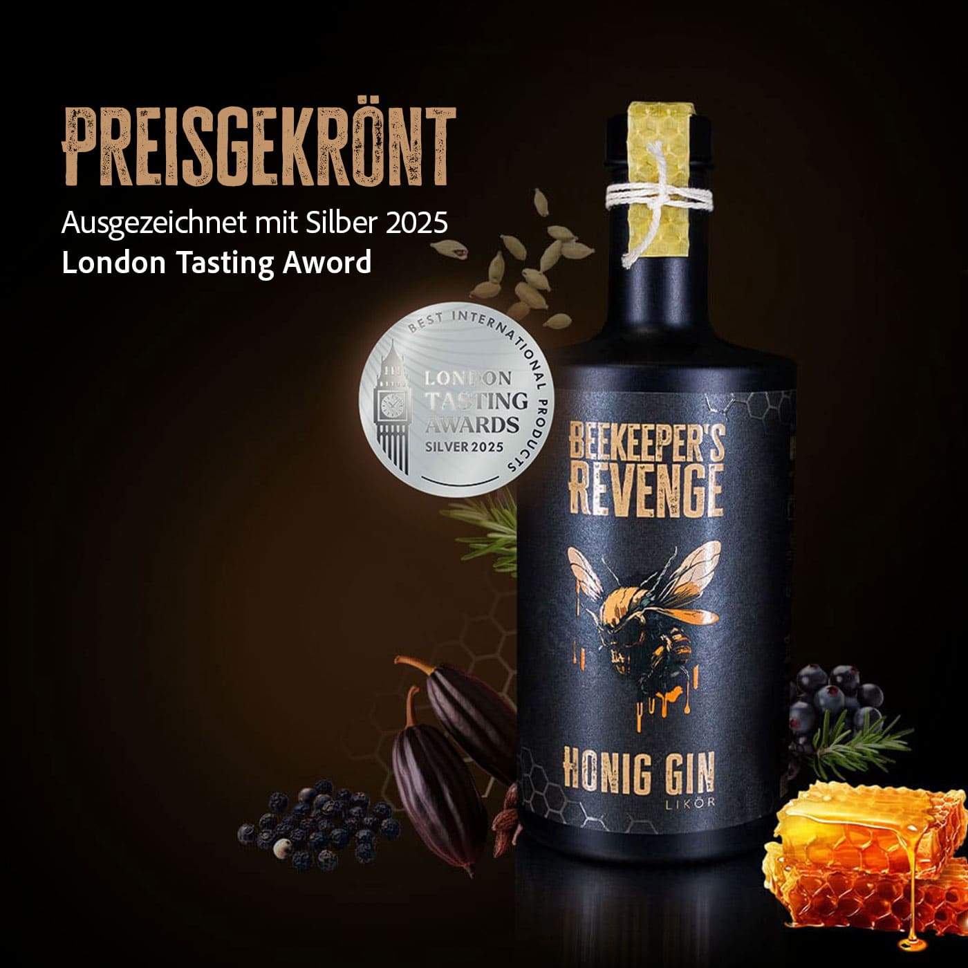 Unser Beekeepers Honig Gin Likör wurde bei den renommierten London Tasting Awards 2025 ausgezeichnet– für exzellenten Geschmack, Balance und Qualität.